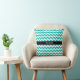Almofada Teal White Chevron ZigZag Black Name Monograma