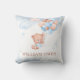 A sweet throw pillow featuring an adorable teddy bear holding soft blue and blush balloons with dreamy clouds and star accents. The gentle watercolor style makes this design a beautiful decorative piece for a nursery, reading nook, baby room, or baby shower celebration. Perfect for a teddy bear theme, boy nursery decor, or a soft pastel space with a charming personalized touch.
