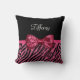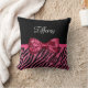 Sua adolescente se sentirá imersa no luxo feminino com esse travesseiro decorativo quadrado de impressão zebra, rosa e preto, tipo brilho, com uma fita cintilante de sequência amarrada em um arco luxo. Personalize este design de moda de impressão de animais brilhantes e reluzentes adicionando seu nome. Imagem impressa plana, NÃO com brilho ou fita real.