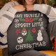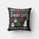 Este maravilhosamente assustador travesseiro decorativo de Natal oferece um giro em gótico nos tradicionais motivos natalinos com flocos de neve e formas estelares formadas por ossos de esqueleto brancos, Enfeites de natal em forma de crânio e bagas sagradas, coroas de Natal assustadoras e árvores e ornamentos e bonecos de neve. Minhas ilustrações em verde, cinza, vermelho e branco são colocadas sobre um fundo preto. Meus gráficos acompanham o slogan TENHA UM PEQUENO NATAL ESTRANHO, soletrado em um crânio branco angustiado e letras em forma de osso. O lado inverso tem um padrão de Natal assustador.