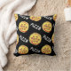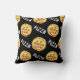 Travesseiro decorativo no preto com um teste padrão de pizzas de pepperoni.