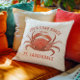 Ilustração manual de cores modernas do caranguejo-laranja elegante sobre fundo branco. Texto personalizável para os negócios de caranguejo.