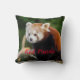 Travesseiro decorativo adorável com foto de um belo e selvagem Panda Vermelha. Em vermelho está "Panda Vermelha". Muito fofo!