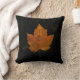 A textura rústica das folhas de maple caiu no templo da fazenda inspirou design. Travesseiro decorativo de sala de estar preto de ouro amarelo outono. Imagem copyright Marg Seregelyi Fotografia.