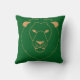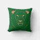 An expressive and elegant depiction of a lion's head, focusing on its regal symmetry and defining features. The artwork uses a stylized, flowing contour line for the main structure, complemented by filled-in details for the eyes, inner ears, and nose, evoking a sense of ancient heraldry. The gold-on-gray color scheme gives it a warm, premium, and sophisticated look.