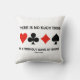 Make others do a double-take with a dose of wry bridge humor with this throw pillow featuring the four card suits along with the following bridge saying often heard at the bridge table -- particularly one with a lot of different personalities: "There Is No Such Thing As A Friendly Game Of Bridge". Memorable bridge saying throw pillow for any avid bridge player!