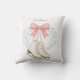 Pretty throw pillow with ice skates and a big pink bow surrounded by snowflakes in the shape of a heart front and back, add a thoughtfully personal message and name for gifting to someone special that enjoys ice skating this winter.