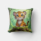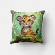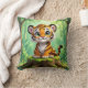 Uma almofada decorativa adorável para o quarto de uma criança. Um desenho animado fofo de um tigre bebê sentado na floresta parecendo adorável.