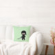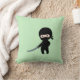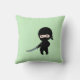 Ninja de desenho animado, bonito mas zangado, vestido de preto, está segurando uma tradicional espada japonesa de katana.