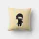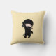 Ninja feliz de desenho animado vestido de preto com braço levantado em ondas. A espada tradicional japonesa katana pode ser vista em cima do ombro.
