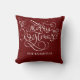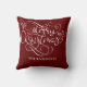 Saudação MERRY CHRISTMAS em uma tipografia elegante e moderna de escrita de caligrafia na sua escolha de cores (mostrada em branco sobre vermelho escuro). Personalize este travesseiro decorativo com o nome da sua família para personalizar o seu decoro de férias. ASSISTÊNCIA: Para obter ajuda sobre modificação ou personalização do design, alteração de cor, transferência do design para outro produto ou se você quiser coordenar itens, entre em contato com o designer ANTES DE ENCOMENDAR, por meio da guia MENSAGEM de bate-papo Zazzle abaixo ou envie um e-mail para makeitaboutyoustore@gmail.com.