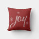 travesseiro de "alegria" de feriado simples, com fundo vermelho texturizado de diamante e flocos de neve. Concebido por Robin; elementos do Pixelscrapper. Coordenando travesseiros de "paz" e "acreditar":