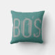 Travesseiro decorativo apresenta BOS - abreviação de aeroporto para Logan International Airport, Boston, MÃE. Texto de cinzas urbanas Grungy sobre fundo de chá
