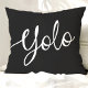 Adicione uma declaração ousada à decoração da sua casa com este travesseiro decorativo "YOLO" do na moda. Apresentando um fundo preto elegante e uma elegante tipografia de roteiro branco, este travesseiro é perfeito para espaços contemporâneos ou como sotaque lúdico em qualquer sala. Um lembrete de excelente para viver a vida ao máximo, este travesseiro combina o minimalismo moderno com uma mensagem impactante, fazer-a imperativa para qualquer espaço vivo.