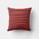 Este travesseiro moderno apresenta listras vermelhas e pretas com linhas brancas finas entre elas.