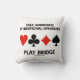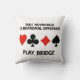 Mostre sua sensação de humor de ponte com este travesseiro decorativo que apresenta os quatro traços de placa junto com o seguinte conselho da ponte: "Aproveite a vantagem dos oponentes irracionais jogam ponte". Ponte memorável dizendo travesseiro decorativo de atitude para qualquer jogador ávido que reconheça irracionalidade quando toca uma mão!