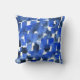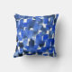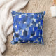 Travesseiro impresso com pintura de cor d'água abstrato original em tons de azul sobre fundo branco.