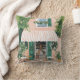 Uma guache de um café picturesco com persianas verdes e varanda floral ignora uma vibrante área de assentos ao ar livre. A luz do sol se filtra, convidando os clientes a desfrutar de um momento pacífico em meio a um florescente verde.