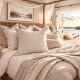 Acessório neutro inspirado na praia em cinza arenoso com detalhes ondulados em champanhe fino ao longo da borda superior. Linhas costeiras minimalistas adicionam um movimento suave sem sobrecarregar o seu espaço. Projetado para sofás em camadas, roupa de cama de linho ou interiores de casas de praia sofisticadas que buscam um caráter sutil de litoral.
