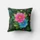 Acelere o seu espaço com este vibrante design de travesseiro floral! Apresentando flores cor-de-rosa e azuis, rodeadas por folhas verdes e flores de sotaque menores, este padrão é colocado sobre um fundo preto elegante que faz as cores pop. Perfeito por adicionar um toque de natureza e elegância a qualquer sala, este travesseiro trará uma vibração fresca e viva à sua decoração doméstica. Seja colocado em um sofá, cama ou cadeira, este impressão floral atordoante é seguramente para pegar o olho e elevar seu espaço com sua charmosa e alegre estética.