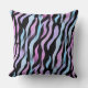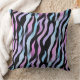 Na moda, travesseiro decorativo elegante com padrão de impressão abstrato zebra em cores pretas, azuis, violetas e cor-de-rosa, feito da minha pintura acrílica original.