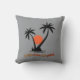 Um travesseiro com um sol laranja vibrante e duas palmeiras pretas, com a frase "Break from the Grind" centrada à volta da imagem. A design evoca imagens de um paraíso tropical e oferece um senso de relaxamento e fuga.