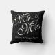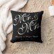 Preto e Branco personalizados, Sr. e Travesseiro de Casamento. Design por Elke Clarke©. Disponível em www.zazzle.com/monogramgallery. Fundo preto colorido, personalizado, personalizado, de cor sólida personalizado, personalizável com nomes de noiva e noivo na fonte de script branco e na data do casamento. Bela design é perfeita para presentes de casamento, travesseiros queridos, presentes de aniversário de casamento e muito mais. Use o menu editar para alterar as cores ou visite nossa loja para obter mais designs e opções de cor.