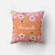 Travesseiro decorativo bonito para meninas. Flores cor-de-rosa e brancas com as abelhas que voam ao redor. Personalize com seu nome.