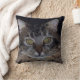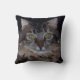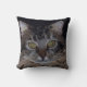 Gato de racum bonito de Maine em um travesseiro preto. Como pode você resistir uma cara como aquele?