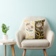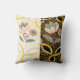 Um travesseiro decorativo na moda com uma design de divisão em negrito: um lado apresenta flores delicadas, do estilo aquarela, sobre fundo creme macio, enquanto o outro apresenta um padrão paisley rico e intrincado em ouro e marrom em uma canvas preta profunda. Este contraste impressionante torna-o uma peça de declaração perfeita para os interiores modernos ou ecléticos. flores florais, vintage, rústicas, laranja, design de bordado, boêmia, botânica, padrão decorativo, arte têxtil, inspiração na natureza