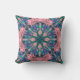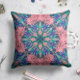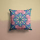 Uma mistura lúdica de aquas, violetas e blues floresce num pano de fundo rosa suave, oferecendo uma nova e caprichosa tomada de design clássico inspirado em mandala.