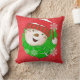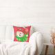Travesseiro de Natal clássico, tão bonito e colorido, apresenta um fundo vermelho com pequenas bolinhas brancas com um círculo verde com pontos brancos e cada lado tem um boneco de neve sorridente com um chapéu, cachecol, nariz de cenoura e flocos de neve!
