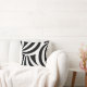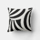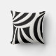 Travesseiro elegante com listras onduladas pretas e brancas abstratas.