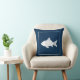 travesseiro decorativo decorativo com peixe branco sobre fundo azul marinho. Veja todos os designs coordenadores de travesseiros nos Sandy Feet Studios.