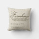 Travesseiro decorativo com a palavra "casa da quinta" e três definições. O fraseio está no marrom escuro em um fundo de creme da cor.