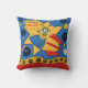 Travesseiro espacial engraçado, excelente para crianças que amam foguetes e espaço sideral! Possui um foguete vermelho, amarelo e azul com uma alienígena verde de olhos grandes nos controles, estrelas e espirros em um fundo azul com uma estrela grande amarela e um balão azul!
