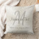 Travesseiro de Casamento Personalizado e Monograma com 3 Caixas de Texto para os Nomes dos Casais, Monograma e Data de Casamento (ou data de aniversário). Champanhe mole e cores de casamento de platina. Ligue para Linda se quiser que eu design isso em qualquer CORES ou designs diferentes.