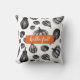 Travesseiro com a ilustração estripante de abóboras pretas e brancas, e texto "olá para a queda" no rótulo laranja brilhante.