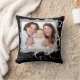 Travesseiro de Dia de as mães de Fotografias Personalizado Incrivelmente. Moldura de cinza giratória com fundo preto. Design de borda elegante, preto e branco. Apresenta uma fotografia personalizada à frente e atrás, excelente como presente ou para compartilhar instantâneos da família!