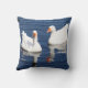 Duas visões de gansos brancos nadando em água azul
