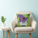 Gato de bruxa hipster bonitinho na bolinhas verde e roxa de volta. Este travesseiro de sotaque faz uma adição excelente a qualquer gato que ama o decor do Dia das Bruxas.