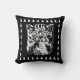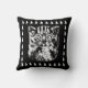 Rosto de gato de olhos largos e engraçado em um travesseiro preto e branco, com uma borda de gatos brancos. Disponível em uma série de estilos e tamanhos de travesseiro. Do Travesseiro Bonito, um compro de Design Scarebaby. Apoiado pela garantia Zazzle.
