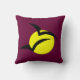 Este incrível travesseiro apresenta uma grande lua de cheio amarela brilhante com dois morcegos pretos voando através dela. O fundo é vermelho criando a aparência de um céu vermelho de sangue.