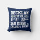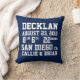 Personalize o quarto do seu bebê com este travesseiro impresso sob medida especial com todas as estatísticas de nascimento impressas em um fundo azul marinho rico. Altere a fonte e o texto para corresponder ao seu estilo!