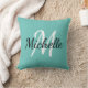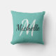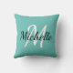 Travesseiro decorativo com um fundo azul claro e um primeiro e primeiro nome do monograma personalizado branco.