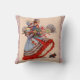 Travesseiro com o casal vitoriano jovem e seu cachorro pequeno voltando para casa na neve do compro de Natal.
