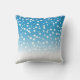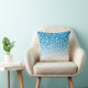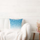 Design de travesseiro de inverno com padrão de neve em fundo de gradiente azul.