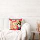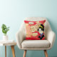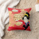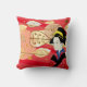 O travesseiro decorativo é mostrado com uma adorável folha de outono impressão com uma mulher asiática de vestido quimono tradicional. Cores de vermelho multicêntrico, bronzeado e preto. Personalize este travesseiro ou comprar como está.