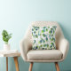 Travesseiro impresso com padrão folha abstrato em azul-aqua, verde e branco, a partir da pintura de cor da água original.
