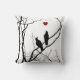 Travesseiro com silhuetas de pássaros em um galho olhando para um coração flutuante. Adoro pássaros pelo que você ama.